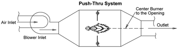 由于之前的电加热系统空间较小,无排烟管道,所以我们选用直接热风方式的线性烧嘴来替换目的热风系统,而不是采购传统的热交换器的方案;